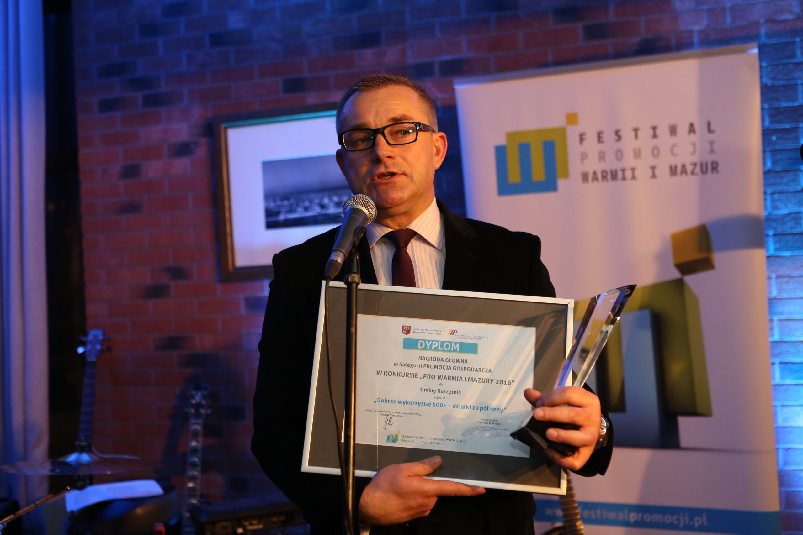 Nagroda główna Urząd Gminy Kurzętnik – „Dobrze wykorzystaj 500+ – działki za pół ceny” – celem projektu jest rozwój mieszkalnictwa jednorodzinnego na terenie gminy, inwestycja w przyszłość dzieci z rodzin korzystających z rządowego programu, poprawa demografii w gminie oraz zwiększenie dostępności działek budowlanych. Gmina zaoferowała 33 działki przeznaczone pod zabudowę mieszkaniową. W ramach projektu nabywcom zostanie udzielona bonifikata w wysokości 50% ceny podstawowej podanej w wykazie oferowanych nieruchomości. Kupujący musi posiadać decyzję o przyznaniu świadczenia wychowawczego z programu 500+ oraz zobowiązać się, że nabytej ziemi nie odsprzeda przez 10 lat, może natomiast przekazać ją swoim dzieciom.